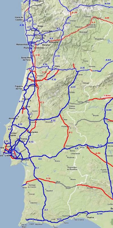 In this map we show the most relevant Motorways in Portugal. Please note most of these roads are toll, so you'll need to take a ticked upon entrance and show it at the exit and pay the journey. Also note "Via Verde" is the line only for vehicles equiped with the automatic payment system which is not applied to our rental cars.